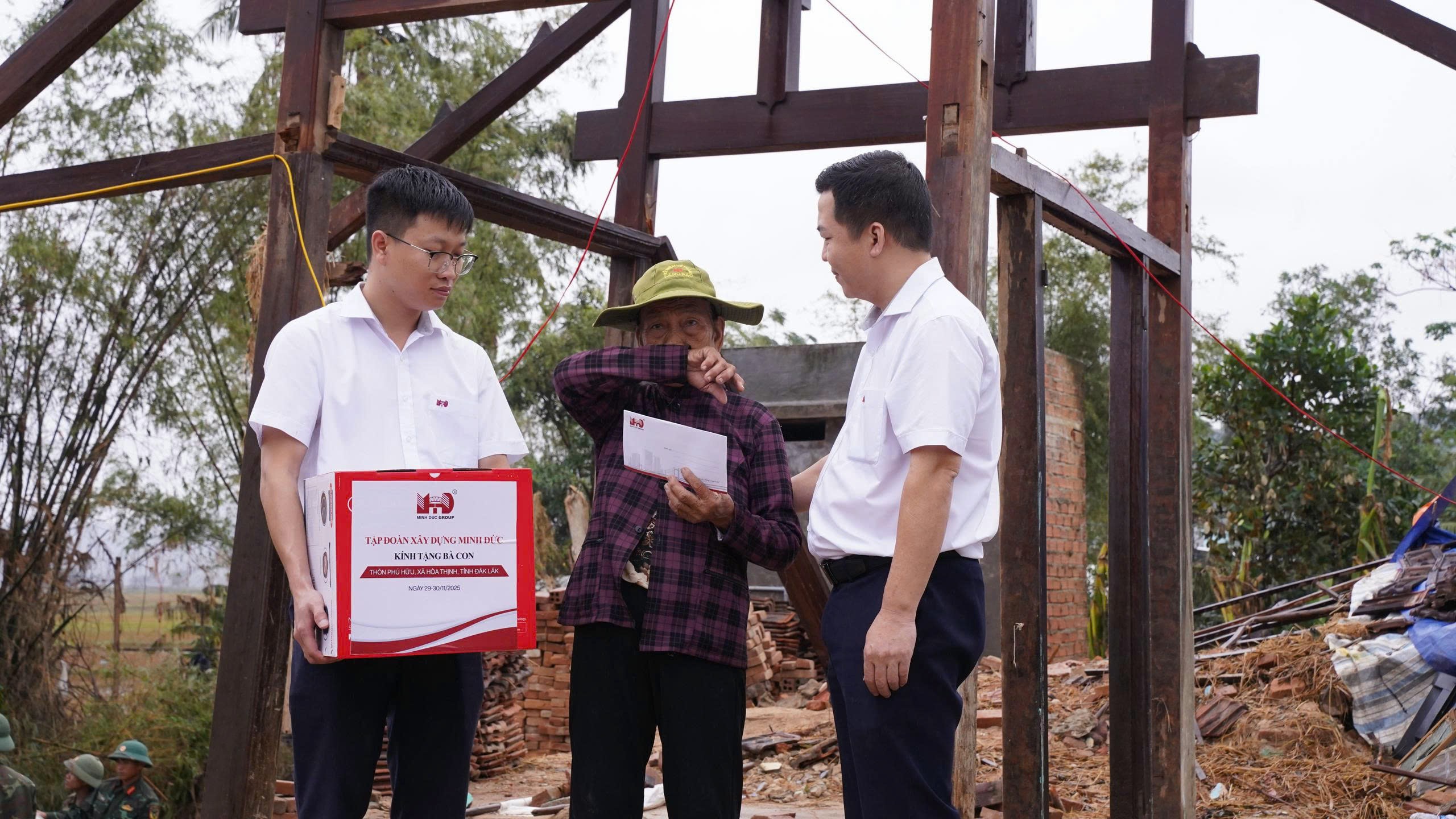 Ông Trần Đại Nghĩa (thứ 4, từ trái sang) - Tổng Giám đốc Tập đoàn Xây dựng Minh Đức cùng các kỹ sư đang trao đổi tại công trường. Ảnh: NVCC